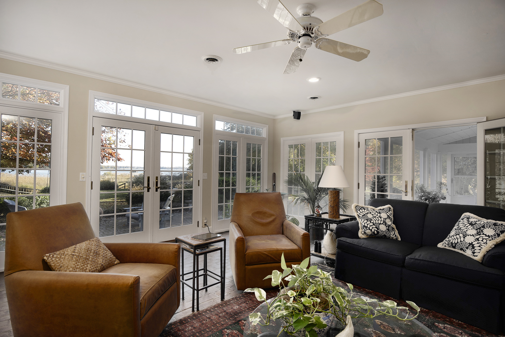 Waterfront ranch home on 2+ acres at 24217 Comegys Bight Lane in Chestertown featuring 3 beds, 3.5 baths, in-ground pool, and two detached garages with finished space.